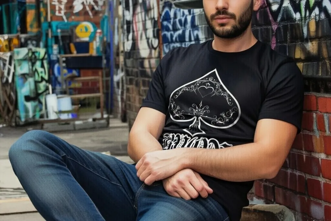 Set on a deep black base, the high-contrast artwork hits clean and sharp — built to stand out without saying too much.